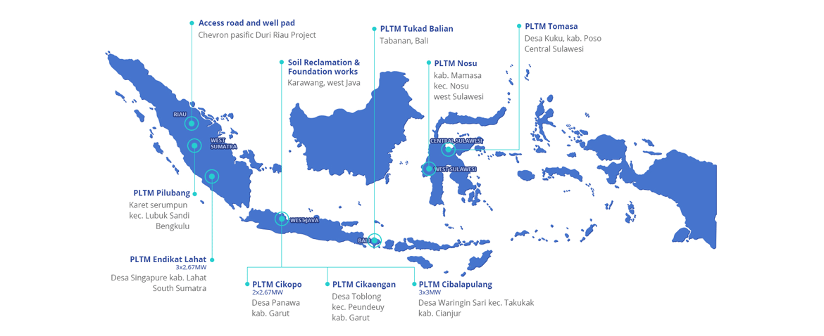 We are fully aware of how our environment conditions are, therefore respecting the environment is our responsibility that we take very seriously. Our project sites are naturally advantageous, allowing us to generate maximum energy with the least environmental impact. Our current sites spread all over Sumatera, Java, Sulawesi, and Bali for its water potential and economic value. We are continuing to extend our sites to a selection of places across Indonesia that has been evaluated and assessed meticulously for minimum environmental risk.